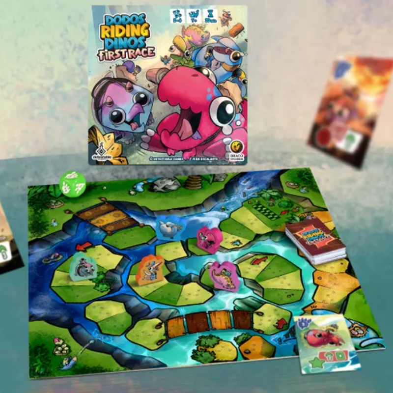 Es un emocionante juego de mesa de carreras y destreza en el que compites como un equipo de un Dodo y un Dino, conocido como “Dodino”. Lanza proyectiles a tus rivales, prueba tu suerte avanzando con dados o frena a otros quitándoles cartas de sus manos; ¡todo vale para cruzar la meta antes que los demás!