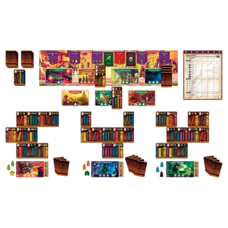 Tienes solo una semana antes de que el Inspector Oficial del Alcalde venga a juzgar su biblioteca, ¡así que asegúrese de que sus asistentes tengan todos sus libros en los estantes! El Inspector es una galleta dura y usará su Lista de verificación oficial para calificar tu biblioteca en varios criterios, incluida la estabilidad en el estante, el orden alfabético y la variedad, ¡y no crea que hará la vista gorda a los libros que el Consejo ha prohibido! ¡Necesitas una planificación astuta y tácticas astutas (y quizás un poco de magia) para superar a tus oponentes y convertirte en Gran Bibliotecario!