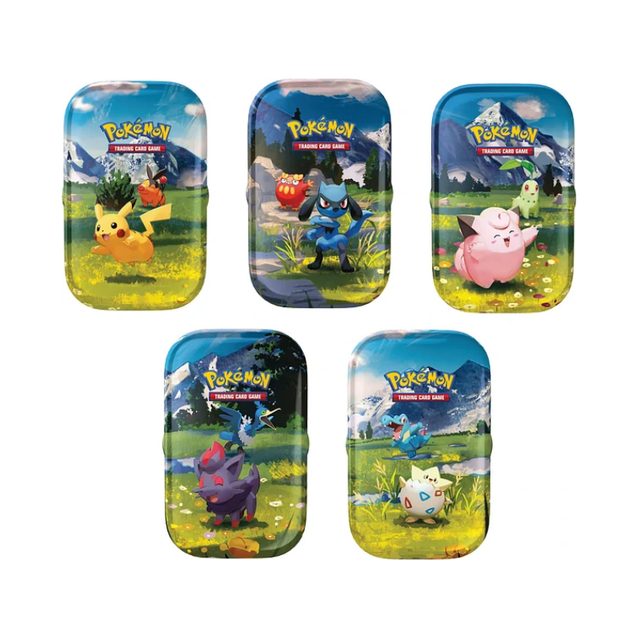 • Una tarjeta de arte de Pokémon que muestra el arte de esta Mini Tin: ¡puedes coleccionar y combinar las 5!