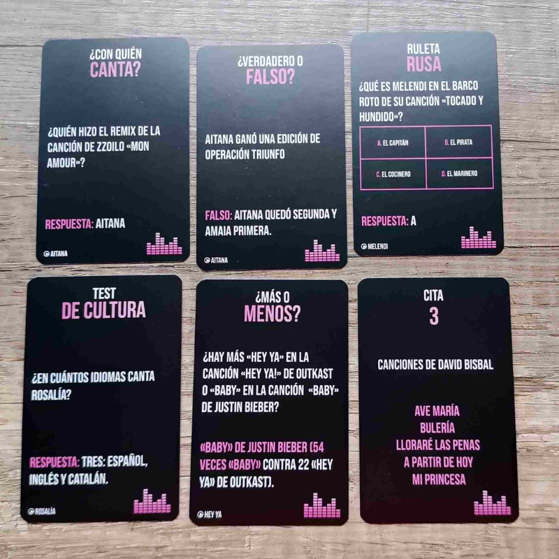 El juego que pone a prueba tu cultura musical de los años 90, 2000 y más.¿Te crees el rey de la pista? Embárcate en este viaje musical intergeneracional.¡Pon a prueba tus conocimientos musicales y reta a tus amigos en este nuevo juego de ambiente estilo karaoke! Cuidado, no solo habrá que cantar, las risas están aseguradas. ¡Demostrad rapidez, memoria y cooperación en este juego de estilo musical! Formad 2 equipos. Cada partida se desarrolla en 4 rondas. Ronda 1: Intentad responder el mayor número de preguntas en 1 minuto. Ronda 2: Ponte a prueba con estas preguntas de cultura y datos random sobre la industria musical. Ronda 3: Escoged una lista de reproducción y preparaos para identificar 5 canciones o artistas del género que habéis escogido. Ronda 4: Conviértete en un artista y haz mímica o tararea la canción que has escogido para que tu equipo la adivine. CONTENIDO 240 cartas repartidas en 4 rondas diferentes, 1 folleto con reglas