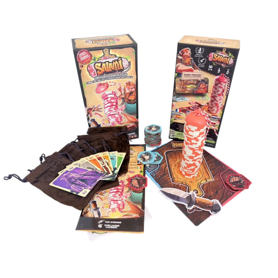 Con una mecánica fácil de aprender, acción en tiempo real y rondas rápidas y divertidas, Salami trae diversión alegre y una combinación única de juego físico y digital a la mesa.