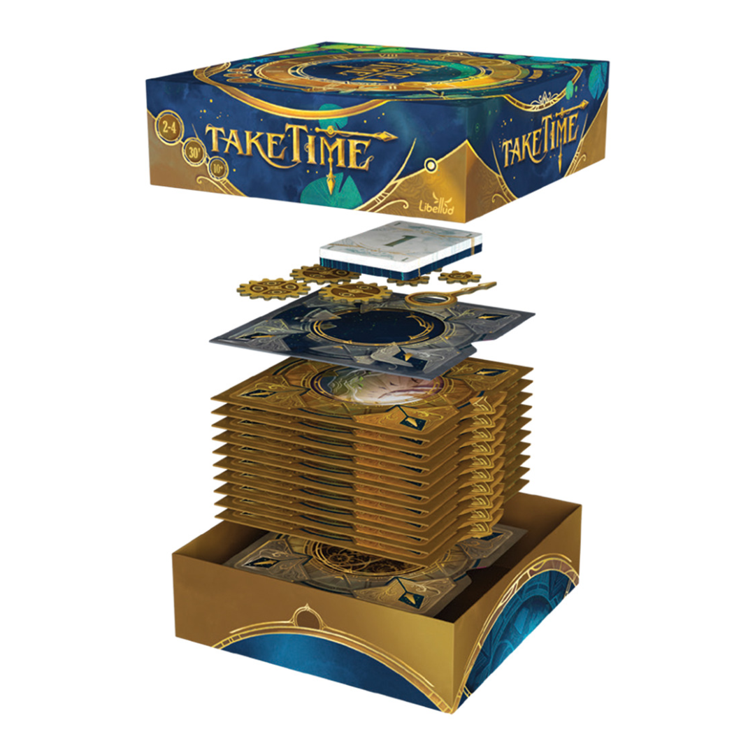 Take Time es un juego cooperativo en el que los participantes deben colaborar para superar diversas pruebas, por lo que la victoria o la derrota serán colectivas. Para ganar, debéis jugar de manera estratégica 12 cartas bocabajo alrededor de un reloj, siguiendo las reglas especiales que se aplican en cada prueba. El juego incluye 40 pruebas que irán aumentando de dificultad y añadiendo reglas nuevas. ¿Podréis superarlas todas?¡Tomaos un tiempo para disfrutar de este maravilloso viaje de principio a fin!