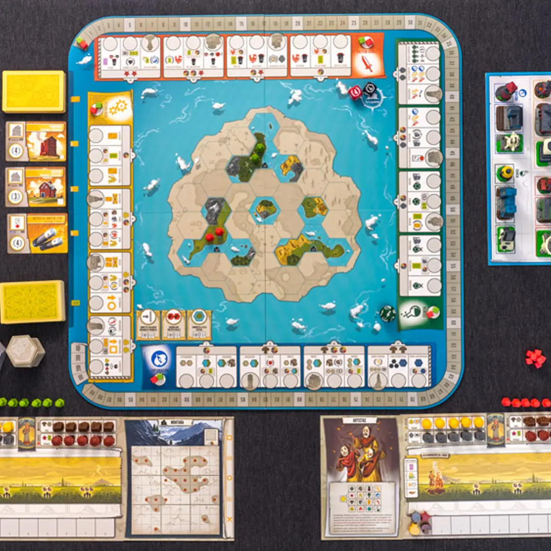 En Tapestry, comienzas de cero y avanzas en cualquiera de las 4 pistas de avance (ciencia, tecnología, exploración y ejército) para obtener beneficios cada vez mejores. Puede concentrarse en una pista específica o adoptar un enfoque más equilibrado. También mejorarás tus ingresos, construirás tu ciudad capital, aprovecharás tus habilidades asimétricas, ganarás puntos de victoria y ganarás tarjetas de tapiz que contarán la historia de tu civilización.